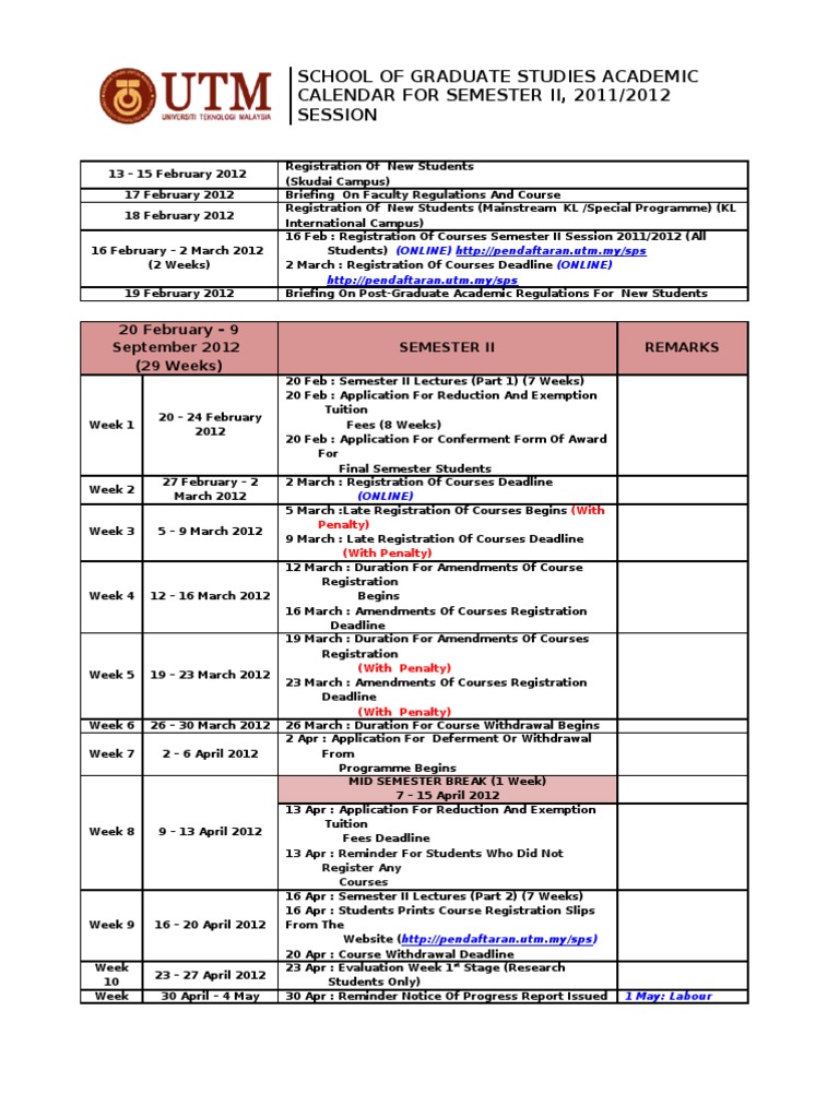 Source : mjiit.utm.myKalendar Sem 220112012 | PDF | Academic Term | Postgraduate Education